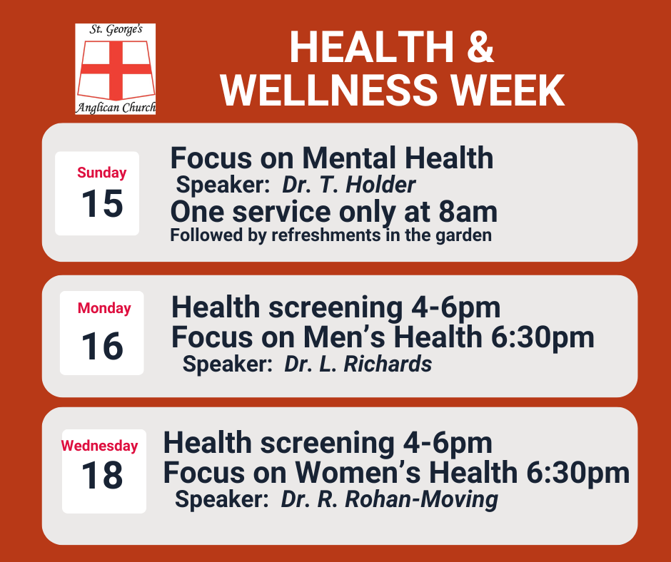 Cayman: St. George’s Anglican Church – Health and Wellness Week 2023 Oct 15,16, 18