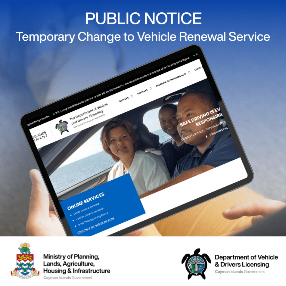 Grand Cayman, George Town, 15 December 2025 — The Department of Vehicle & Drivers’ Licensing (DVDL) is advising the public that all vehicle licence renewals will be available online only from 17 December through 31 December 2025.