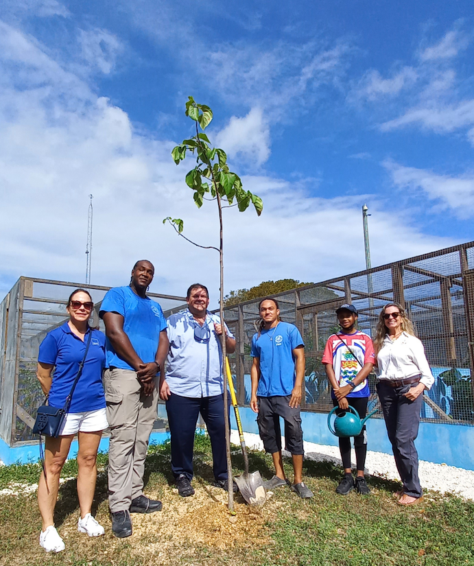 The Cayman Islands sent a contingency of 12 – including nine Caymanian students – to the international climate summit. Accordingly, a total of 12 trees (including 10 Broadleaf, Cordia sebestena var. caymanensis) were planted at the Blue Iguana Conservation facility at the Queen Elizabeth II Botanic Park to offset the air travel emissions.