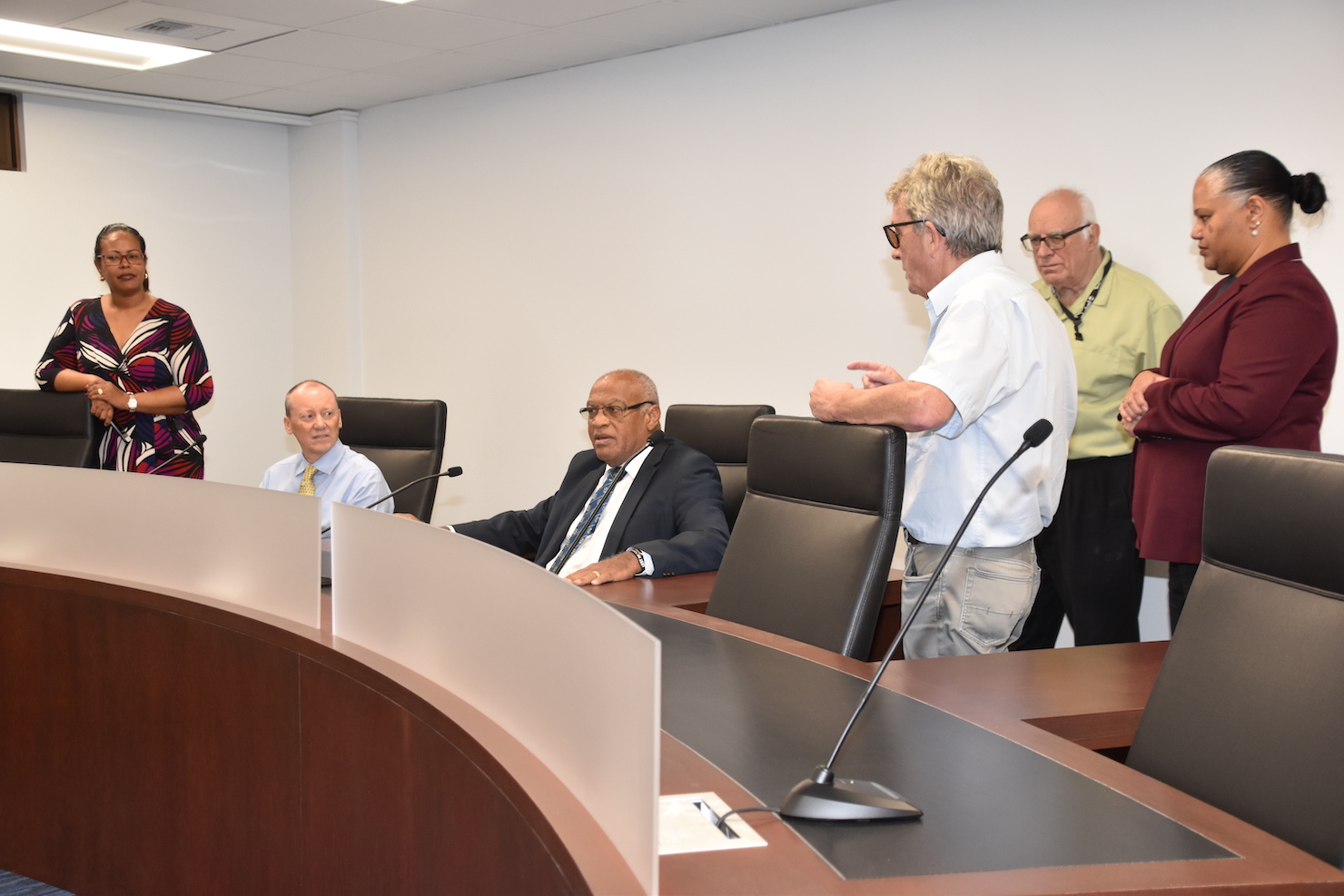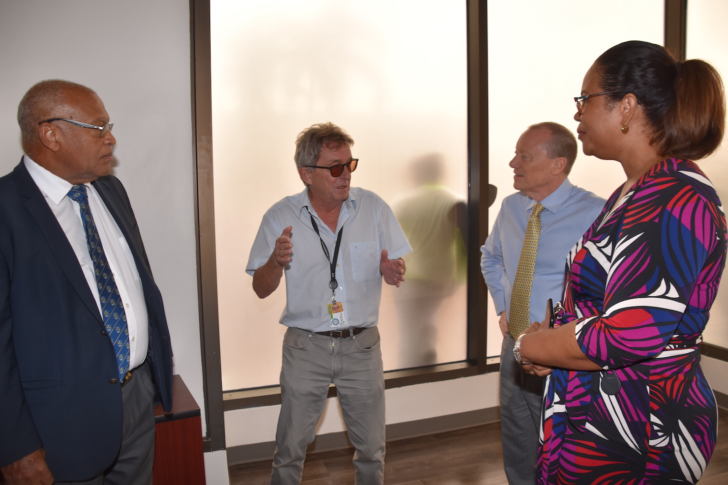 The Governor was hosted by the Chief Justice, Sir Anthony Smellie; Court Administrator Suzanne Bothwell; and Judicial Administration’s Deputy Chief Officer Natasha Scotland. The party was conducted on the tour by Senior Project Manager Simon Griffiths, PWD’s Major Works lead officer, and Judicial Quantity Surveyor/Assistant Project Manager Colin Wilson. The courtrooms comprise Phase 1 of an expansion programme, the need for which was identified more than 20 years ago.