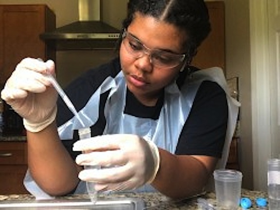 Over a two-week period, they worked up a series of experiments and then distributed materials to the students. All of the compounds involved were, by design, common household chemicals, Gayle said. Neither instructor wanted to worry about any problems with any possible caustic chemicals in their students’ homes.