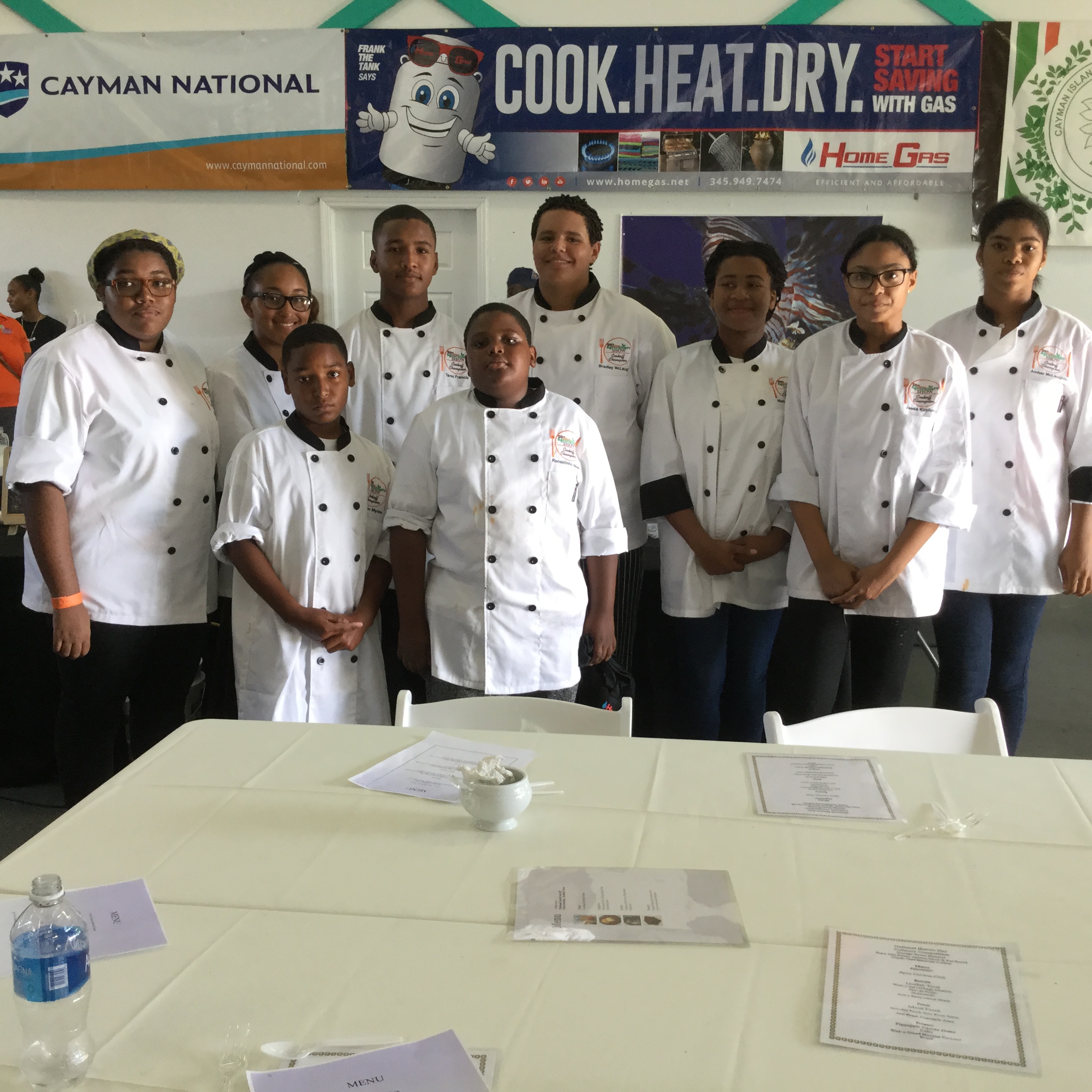The teams in the final were – George Town – Team Girl Power – Ayanna Davis-Eden (Triple C School) and Tya Bovell (Triple C School), trained by Chef Master Cubbon (Food Revolution); Bodden Town – Team Bradley – Bradley McLaughlin and Tarec Francis from Clifton Hunter High School, trained by Chef Thomas Tennant (The Brasserie); North Side – Team Mo – Mohyndra Brown and Amber McLaughlin from Clifton Hunter High School, trained by Chef Jennifer Dodd (Ritz-Carlton Cayman); East End – Team Jaeda – Jaeda Kirchman and Kristin Kirchman (Clifton Hunter High School), trained by Chef Elardo Macdonald (Wyndam Reef Resort); Cayman Brac – Team Straight Outta Spot Bay – Eugenio Myles and Ronaldinho Vassel (Layman E. Scott High School), trained by Chef Thushara Jayalath Siriwardana (Grand Old House) and UCCI School of Hospitality Management – Team UCCI – Henricho Swaby and Mikayla Hydes trained by Chef Narayan Thapaliya (Grand Old House).