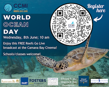 The Central Caribbean Marine Institute (CCMI) is celebrating World Ocean Day in 2022 with a special Reefs Go Live broadcast at the Camana Bay Cinema. We invite members of the public, tourists, school groups, and ocean enthusiasts to join us for this FREE event. Seating is limited at the Cinema; registration is required. Virtual registrations also available.