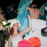 The atmosphere was festive like a New Year’s Eve night; grown up men and women dressed up in all types of fantasy costumes ready to exhibit for the crowd at the parade, which was immense. I was wondering how I could see to report accurately. My good angel whispered in my ear, show the cops your press credentials and, voila, I was in, like an official enjoying the best view of the parade.