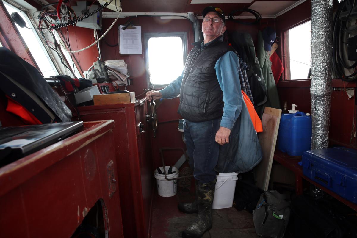 Skipper Tom Best pilots his boat while working with a team of marine biological technicians from Fisheries and Oceans Canada, who were tagging cod in Motion Bay. (Craig F. Walker/Globe Staff)