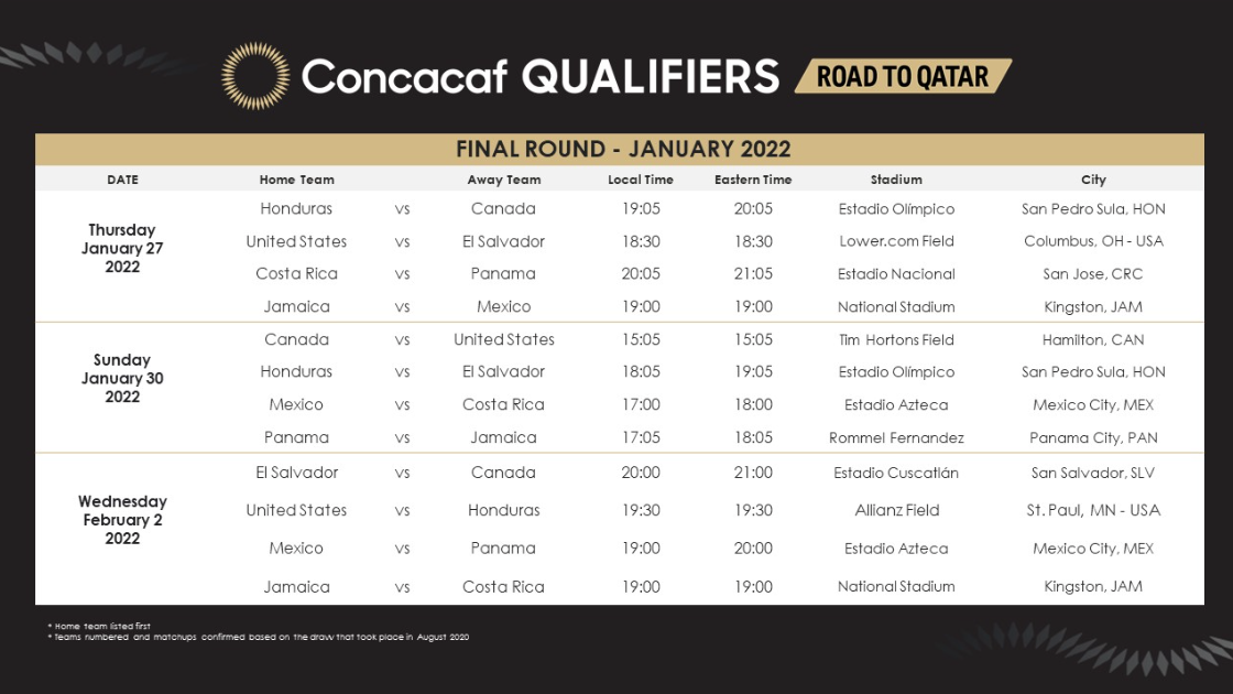 Concacaf and FIFA confirm schedule for January’s Final Round matches of men’s World Cup Qualifying