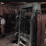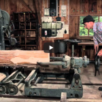 Two guys work at a sort of primitive bandsaw mill, and are tasked with turning big-ass logs into boards. Logs of that size would be impossible for two men to lift, so they’ve got a cool series of trolleys, tracks and contraptions they use to haul, position and mill it.