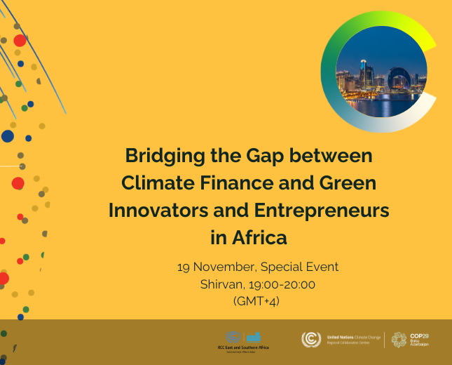 | 19 November, 7:00-8:00 PM (Baku) Location: Special Event Room – Shirvan, Area B Org: East and Southern Africa, UNFCCC. Regional Collaboration Centre Kampala |