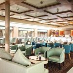 Among the six restaurants on the boat, there were two ever-flowing all-you-can-eat buffet stations but Sadie and her mother Laura opted for healthy salads at meal times. Pictured is the Explorer’s Lounge