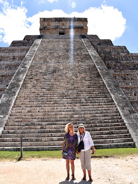 Sadie and her mother who was also a cruising virgin at 57 (right). The pair at Chichen Itza in Mexico on one of the ship’s excursions (left)