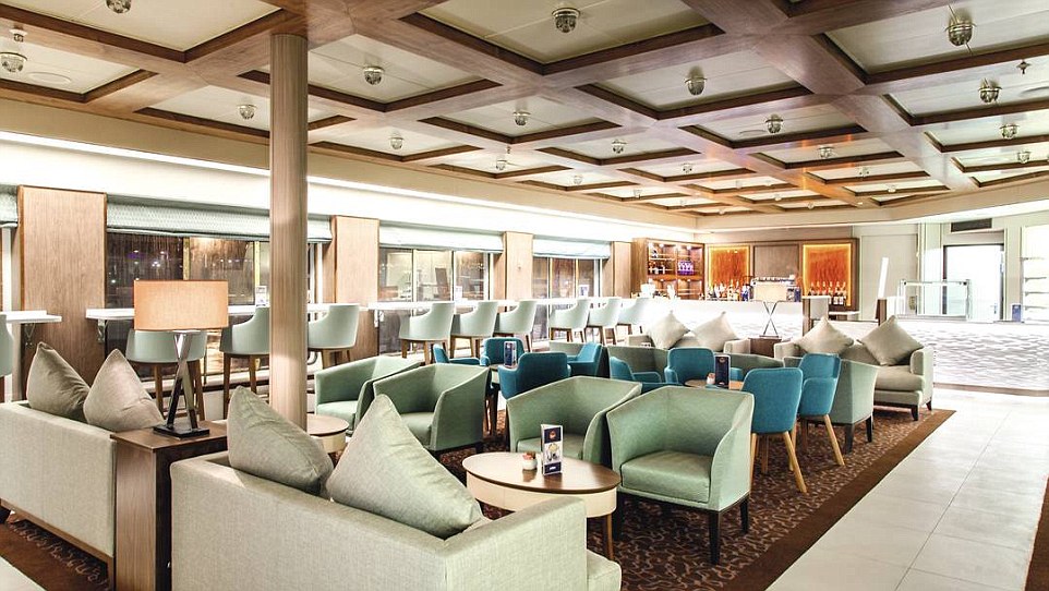Among the six restaurants on the boat, there were two ever-flowing all-you-can-eat buffet stations but Sadie and her mother Laura opted for healthy salads at meal times. Pictured is the Explorer’s Lounge