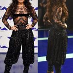 At the MTV Video Music Awards in August 2017, Demi Lovato wore a completely sheer bodysuit tucked into harem-style pants.
