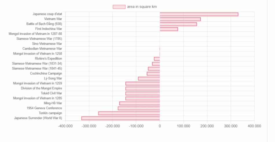 However, from the 16th to the 19th century, Vietnam entered a phase of internal fragmentation, marked by the coexistence of rival dynasties and increasing geopolitical vulnerability. The French domination (1887–1953) marked a renewed loss of sovereignty, further aggravated by the brief Japanese occupation in 1945. Only through the long war of independence (1955–1975), culminating in postwar reunification, did Vietnam regain full statehood, reactivating a sovereignty that, although more recent, is rooted in a long memory of resistance and resurgence. Particularly interesting, relating to the centuries-long history of the Vietnamese state, is the ranking of major geopolitical changes triggered in a wartime context (Figure 6). Figure 6 is especially relevant as it illustrates how war, despite its destructiveness, often acts as a catalyst for territorial redefinition and the resurgence of Vietnamese sovereignty. Each conflict marked in the chart represents not only a crisis but also an opportunity for the consolidation of national identity and the reaffirmation of statehood.