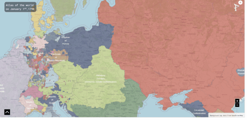 Figure 8. Post-partition map of Central Europe (1796), depicting the geopolitical erasure of Poland and the redistribution of its territory among imperial powers—a visual testament to the fragility of state borders.