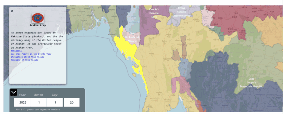 Figure 11. Projected territorial extent of Arakan Army control in 2025, signaling the consolidation of parallel sovereignty and the potential trajectory toward formalized statehood.