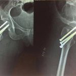 She is currently recovering from a four-hour long surgery during which three screws had to be placed in her leg to reattach her femoral head to the bone.