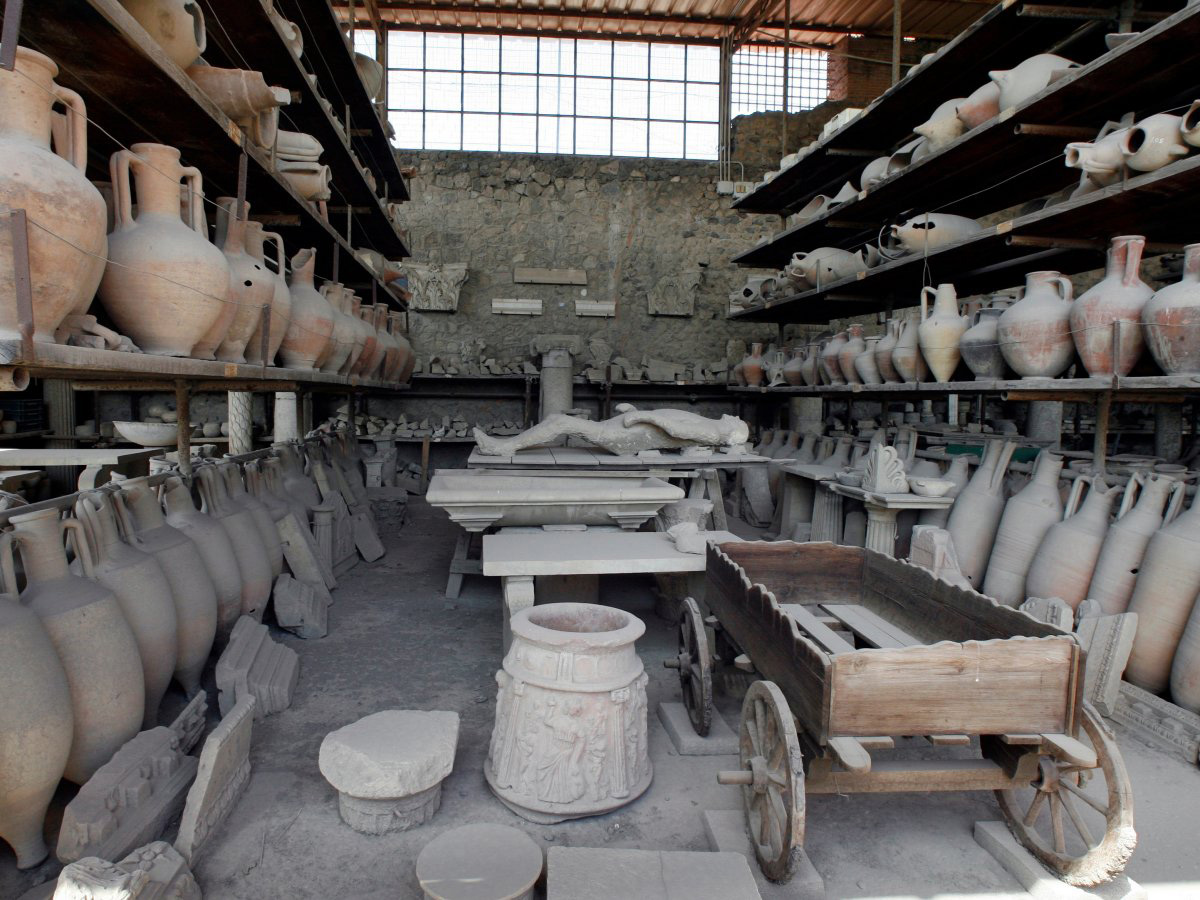 Even everyday household items were uncovered, most famously some loaves of bread. This is the The Granai del Foro, which stores the many amphorae and body casts that were made in the late 19th century.