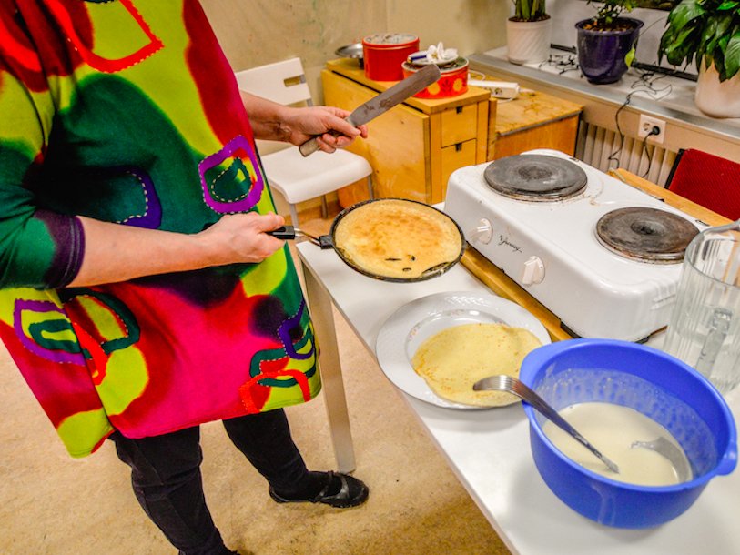 Learning to make pancakes at a Meet The Natives class.Jessie on a Journey
