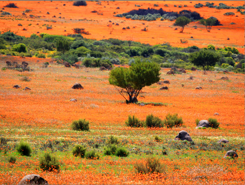Journey to Namaqualand, an arid region that stretches over some 600 miles in Namibia and South Africa. Every spring, the barren area suddenly fills with orange and white daisies, creating one of the most surreal landscapes in the world.