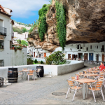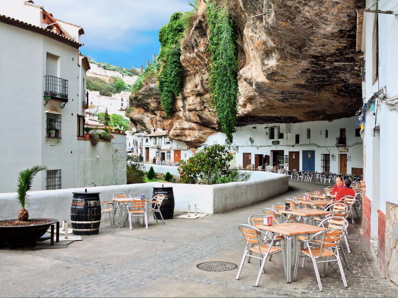 Setenil de las Bodegas grew out of a network of caves located in the cliffs above the Rio Trejo in Spain. Today, its white houses have been built within this network, and some even have rock roofs. The area is also home to bars, restaurants, and spectacular food.