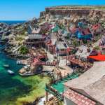 Malta’s Popeye Village was originally created as a film set for the 1980 film “Popeye” before being repurposed into a theme park. The set was created using tree trunks brought in from Holland and around 2,000 gallons of paint. Today, visitors can enjoy boat rides, a winery, and water trampolines.