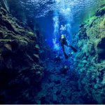 The Silfra fissure, located within Iceland’s Thingvellir National Park, is one of the only places in the world where visitors can swim between two continents. Not only is it home to some of the world’s clearest waters, but in some instances, the spaces are so narrow that swimmers can actually touch the continental plates of both North America and Europe.