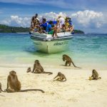 “Inhabited only by monkeys! What more could you want?” Asquith said. “Only accessible by boat, this feels like a strange toned-down version of planet of the apes. I would suggest sunbathing on this beach is not advised otherwise you are going to have multiple furry creatures with long tails jumping over you.”