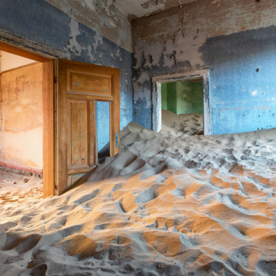 Abandoned building being taken over by encroaching sand, Kolmanskop ghost town, Namib Desert