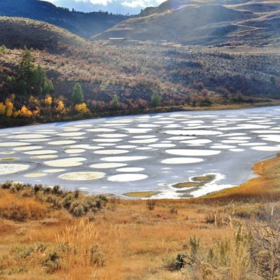Spotted lake in Okanagan Valley, Osoyoos, British Columbia. It contains dense deposits of magnesium sulfate, calcium and sodium sulfates. Spotted Lake was for centuries and remains revered as sacred