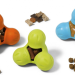 If you’re dog’s a chewer, there are a variety of products from Nylabone that offer dogs long-lasting chewtastic times. Unlike rawhides or other chew toys that eventually get totally chewed down and consumed, these bones are made of nylon that offer up long-term chewing for active dogs. Bonus point: These toys make good supplementary dental tools.