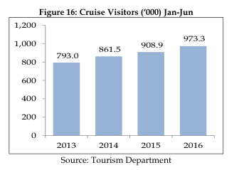 Stay-over visitors declined by 1.4%, but cruise visitors continued to expand;