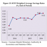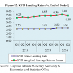 The KYD weighted average lending rate rose from 6.85% to 6.88% while