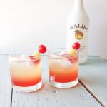 TIP: If you want to layer your Malibu Sunset Cocktail like we have watch the video below. It’s really quite simple. The principle of drink layering works this way. The sugar content creates various weights and densities in your ingredients. They will naturally layer if poured correctly into your cup as directed. You MUST add the ingredients as shown to have success. Good Luck!