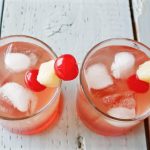 I stuck 2 cherries and a pineapple chunk on a toothpick for a garnish. Enjoy your drinks immediately.