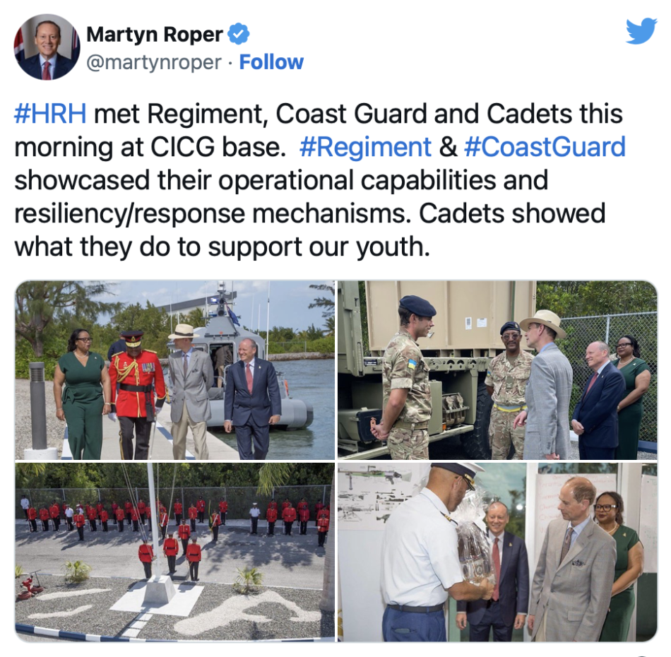 On Grand Cayman, The Earl of Wessex met the Cayman Island’s Regiment, Cadet Corps and Coast Guard.
