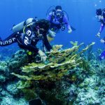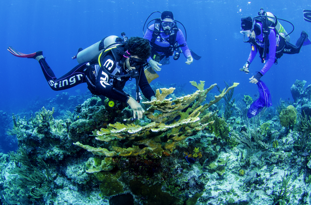 Caymanian student Eryka Ebanks collecting coral fragments for Ocean Frontiers’ new coral garden, announced on Earth Day.