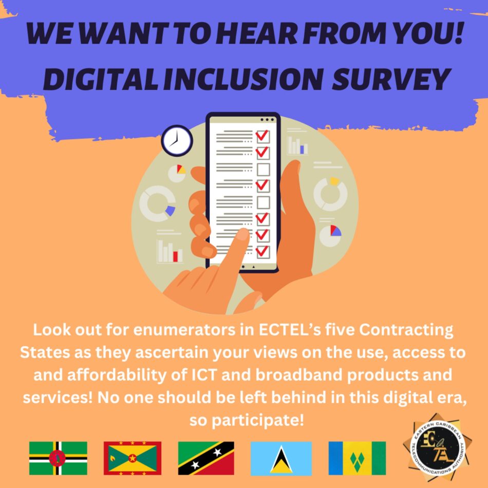 According to Ms. Cheryl Hector Fontenelle, ECTEL’s Director of Economics and Finance, “The Digital Inclusion Survey will examine the use of ICT and broadband services, the levels of digital literacy and skills, as well as identify barriers to access and use of ICT and digital services.”