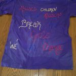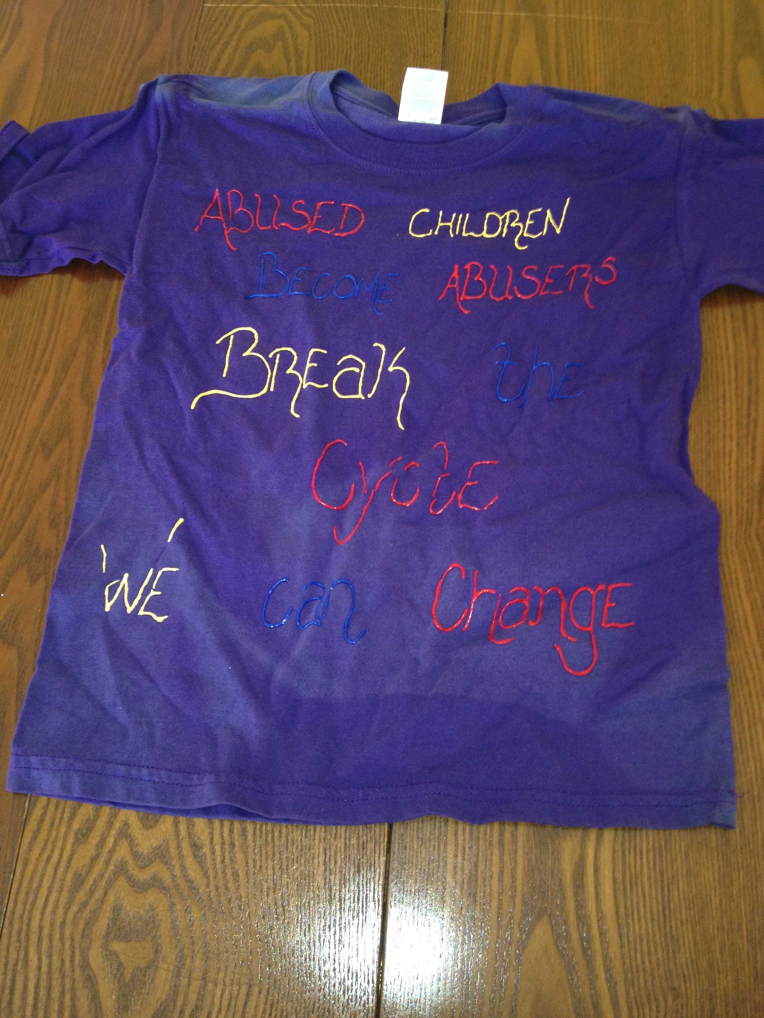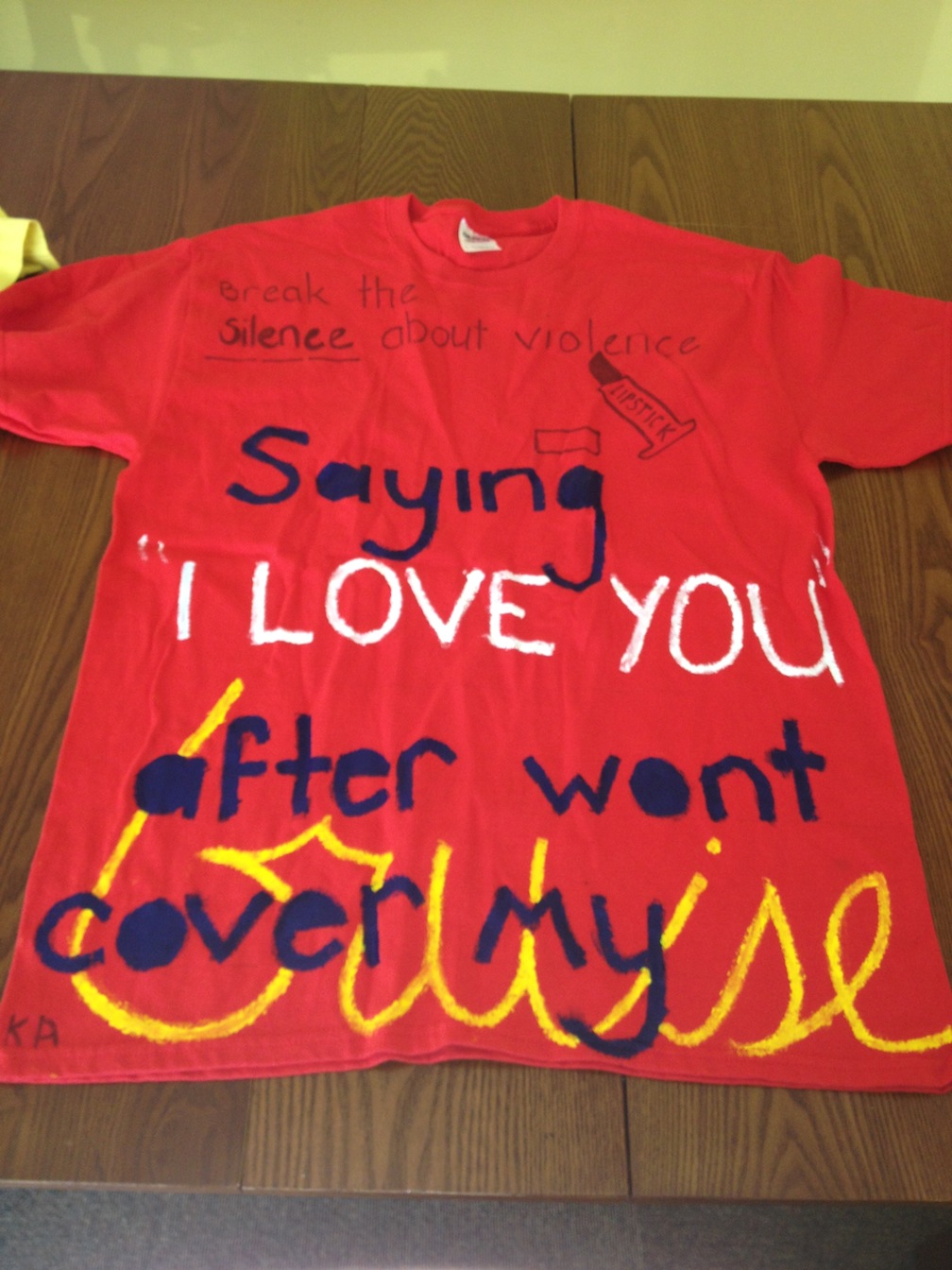 “At the same time observers learn more about the ramifications of gender-based violence by looking at the t-shirts. In this manner all concerned can move forward and be better informed about the psychological toll of such crimes.”