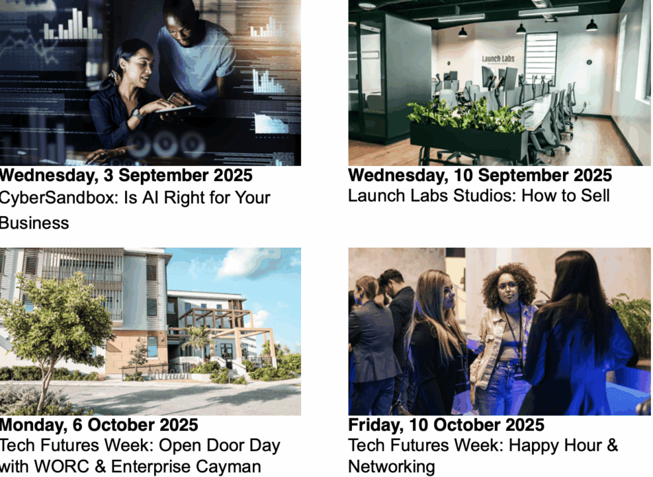 September has been a milestone month for Enterprise Cayman. We’ve officially launched our Pathways in Tech Programme, opening new doors for Caymanians and residents to gain globally recognised certifications and career-ready skills. We’re also gearing up for Tech Futures Week 2025, a major initiative in partnership with WORC, designed to showcase Cayman’s tech opportunities and connect talent with industry leaders.
