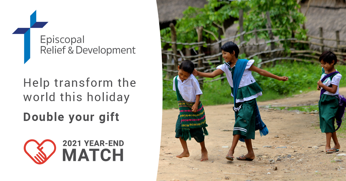 Between now and December 31, eligible contributions up to $650,000 will be matched. Donate online at episcopalrelief.org/match, or call 1.855.312.4325. Gifts can also be mailed to Episcopal Relief & Development, PO Box 7058, Merrifield, VA 22116-7058.