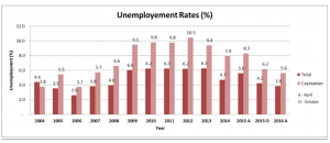 The Caymanian unemployment rate dropped from 8.3% in Spring 2015 to 5.6% in Spring 2016. The number of unemployed Caymanians settled at 1,111 compared to 1,575 a year ago.