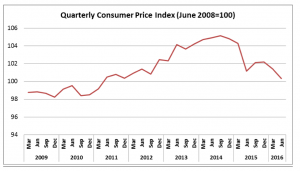 For the second quarter of 2016 (1 April – 30 June 2016) the CPI declined by 0.8 percent when compared to the same period in 2015.
