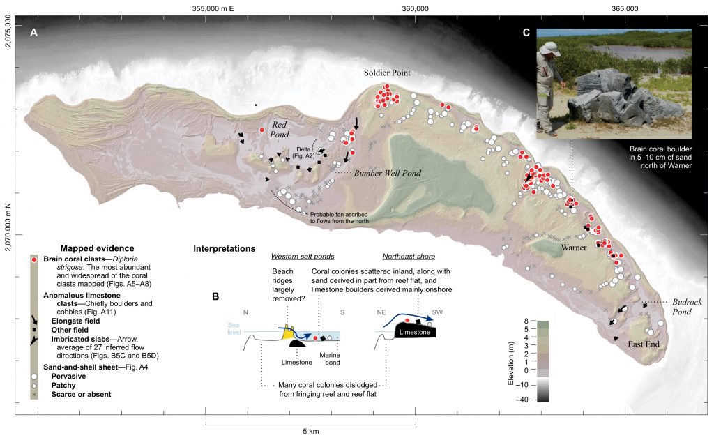 In a journal article published earlier this week, researchers at the University of Washington, USGS, and several other institutions outlined evidence of extreme waves in the British Virgin Islands. The evidence for this coastal inundation are brain corals scattered up to one third of a mile inland from the northern coastline of the island of Anegada.
