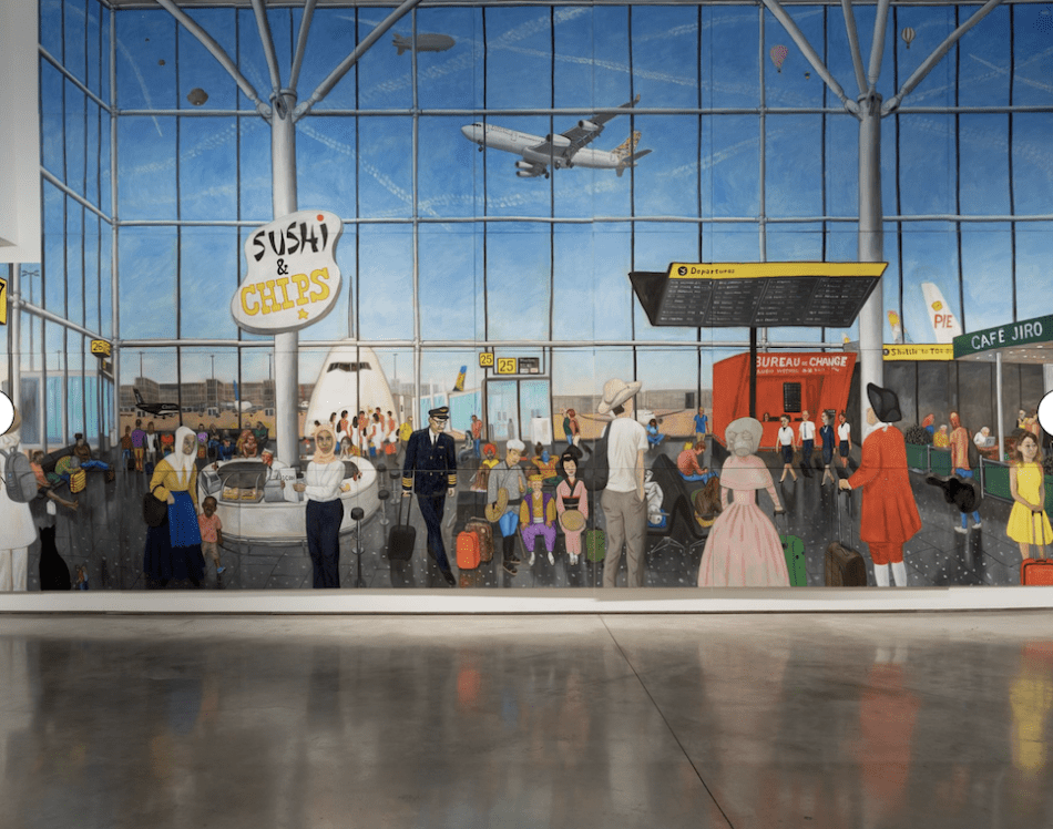 - A room-sized imaginary departure lounge by artist Jiro Osuga, interspersing fantastical and historical characters among the travellers waiting to board their flights.