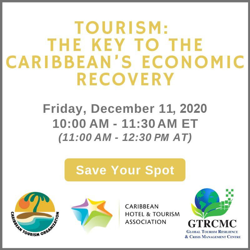 | MIAMI, Florida (December 8, 2020) – Strategies for the quick recovery of Caribbean economies from the devastation wrought by the Coronavirus Disease 2019 (COVID-19) pandemic will be discussed by regional and global stakeholders at a virtual forum hosted by the Caribbean Hotel and Tourism Association (CHTA), Caribbean Tourism Organization (CTO), and the Global Tourism Resilience and Crisis Management Centre (GTRCMC) on Friday, December 11, 2020. Moderated by veteran Caribbean journalist Julian Rogers, “Tourism: The Key to the Caribbean’s Economic Recovery” will bring together public and private sector leaders, the international tourism development community, members of civil society and the media to identify lessons learned from the pandemic and to address how the highly tourism-dependent region can harness the economic power of tourism to mitigate the impact of the pandemic and revitalize the region’s economies. Panelists include Lisa Cummins, Barbados’ Minister of Tourism and Chairman of CTO; Edmund Bartlett, Minister of Tourism of Jamaica and Co-Chair of GTRCMC; CHTA’s CEO and Director General Frank Comito; Michel Julian, Senior Programme Officer with the World Tourism Organization (UNWTO); and Virginia Messina, Managing Director of the World Travel & Tourism Council (WTTC). Other Caribbean leaders are expected to join the discussion. A key goal of the forum is assessing tourism’s impact on Caribbean economies and identifying joint actions which can facilitate tourism’s recovery and strengthen the region’s economies. The forum will draw upon the thinking of the participating organizations as well as the desire of many Caribbean Heads of Government as expressed recently at a CARICOM meeting for the region to take a collaborative and comprehensive approach to stimulating and accelerating tourism’s recovery. During the online forum, participants will examine the resilience of the sector and how the Caribbean’s dependence on tourism for economic stimulation will increase in the post-COVID future as tourism is likely to bounce back sooner and faster than other segments of the economy. National, regional and global policy stakeholders are encouraged to attend the forum. To reserve a space for the forum on Friday, December 11 at 10 a.m. ET, visit https://member.caribbeanhotelandtourism.com/link.asp?ymlink=648160603 |