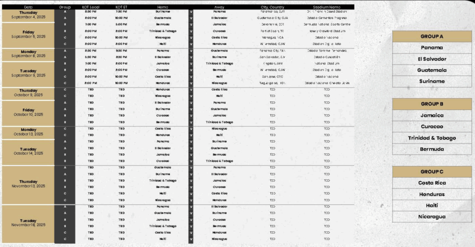 Miami, FL (Monday, July 21, 2025) – Concacaf has announced today the match schedule for the region’s men’s World Cup Qualifying matches that will be played during the FIFA Match Windows of September, October, and November 2025.