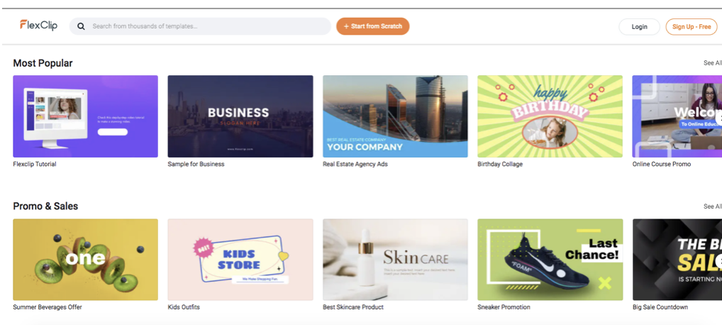 In FlexClip you will also find a lot of premium templates. If you are one of those who do not like to record or do not have enough style to do it well, the folks at FlexClip have a lot of pre-recorded clips.