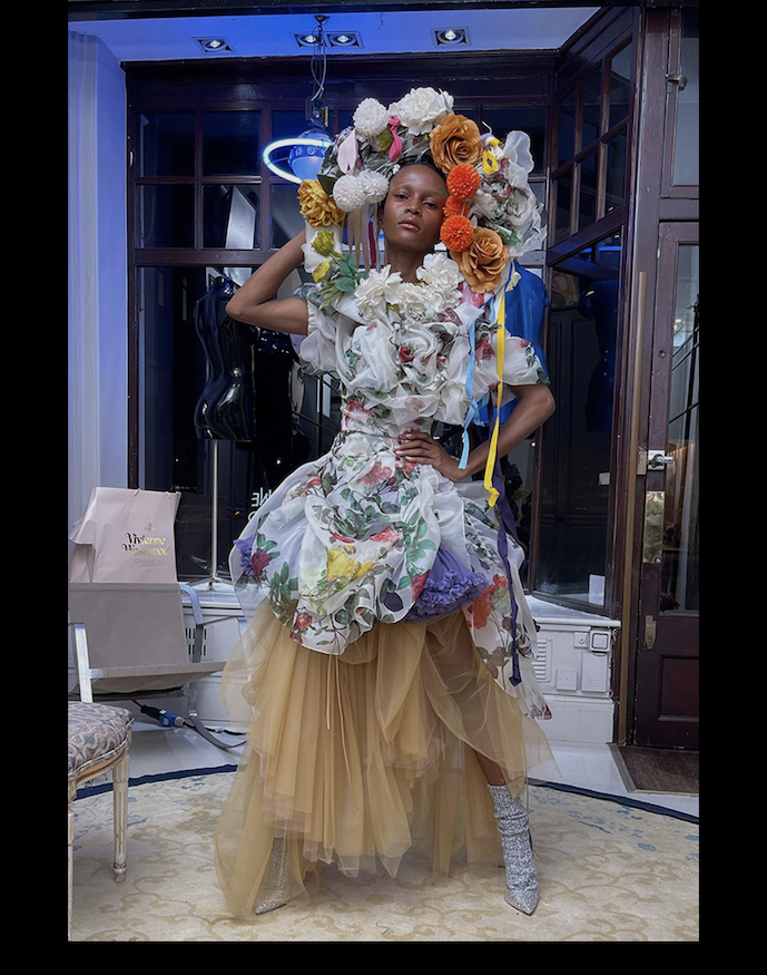 Vivienne Westwood, renowned for her passion for nature and climate activism, also reflects on her love and knowledge of flowers in her designs, blending aesthetics with deeper cultural meaning. Vivienne Westwood have used floral prints and embellishments to explore nature, femininity, and rebellion throughout their collections, often contrasting soft floral elements with a punk or DIY aesthetic. The works featured in the exhibition showcase Westwood’s ability to fuse romanticism with avant-garde style, drawing on historical fashion influences to create a unique fusion of tradition and rebellion.