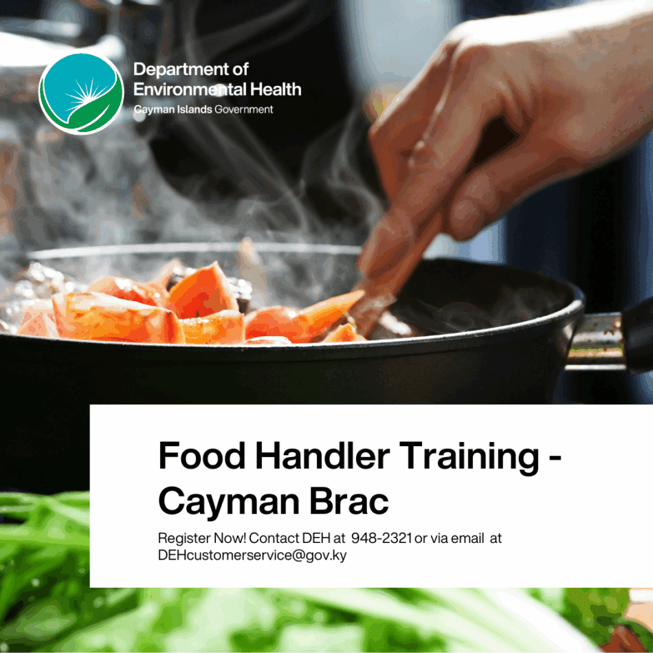 The Department of Environmental Health (DEH) is conducting a Food Hygiene Handlers Certification session in Cayman Brac on Tuesday, June 17, 2025, for persons who have never been certified and persons whose certifications have expired.