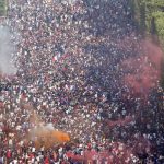 Crowds party in front of the Eiffel Tower